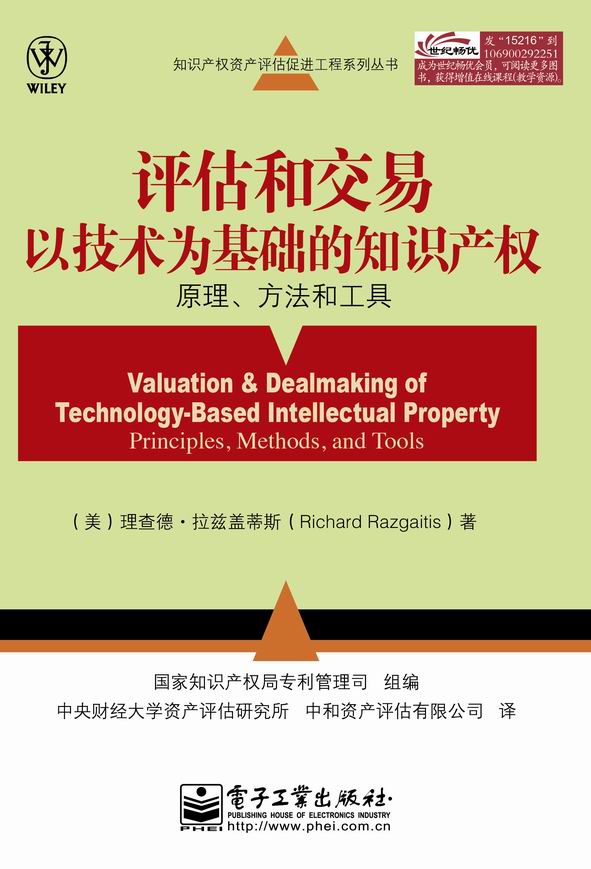 本書(shū)是“知識產(chǎn)權資產(chǎn)評估促進(jìn)工程系列叢書(shū)”之一,該叢書(shū)由國家知識產(chǎn)權局遴選引進(jìn)國外優(yōu)秀知識產(chǎn)權資產(chǎn)評估著(zhù)作并組織編譯。中和資產(chǎn)評估有限公司與中央財經(jīng)大 學(xué)資產(chǎn)評估研究所聯(lián)合擔任了本書(shū)的譯制工作。