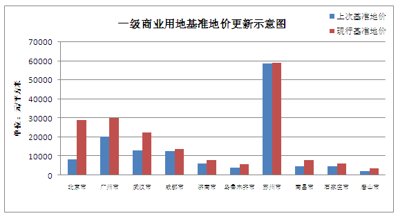 部分一、二線(xiàn)城市基準地價(jià)更新示意圖
